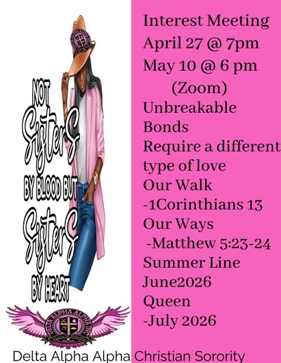 Our Bible College has a Christian Sorority. Please visit website www.deltaalphaalphachristiansorority.org.